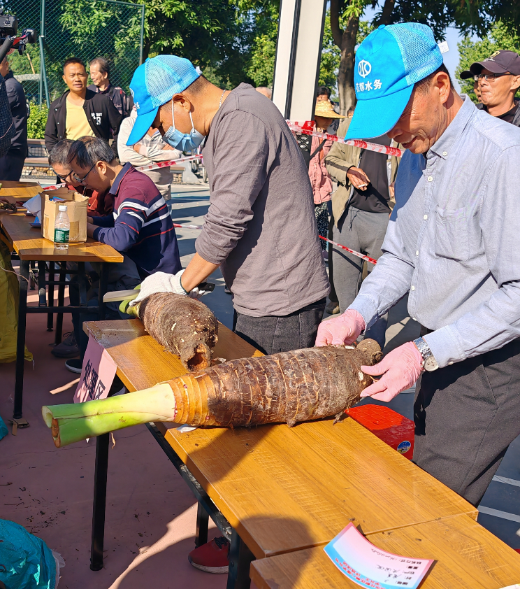 本次竞选由种植户向村委会报名,确认开挖,活动当天经过工作人员认真细致的登记、分拣处理、称重等流程,结合芋头品相和重量,在参选的16户种植农户中,评选出第八届芋头王及前十名送选种植户。